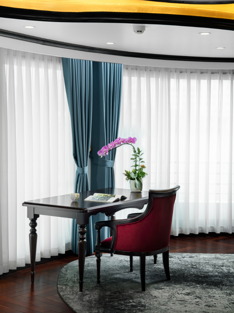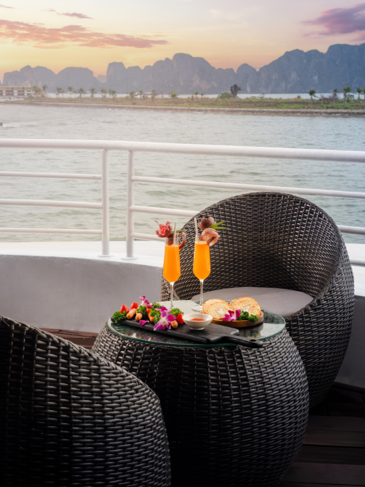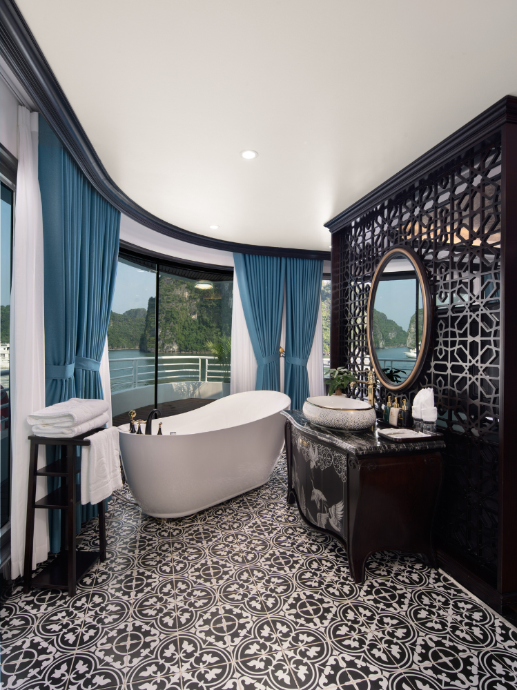 Du thuyền Catherine là sự giao thoa tinh tế giữa nét đẹp đa văn hóa, nơi hơi thở Việt hòa quyện cùng sự thanh lịch châu Âu trong không gian sang trọng. Lấy cảm hứng từ phong cách Đông Dương, du thuyền mang đến một hải trình nhẹ nhàng nhưng trọn vẹn, nơi mỗi khoảnh khắc đều là sự tận hưởng tinh tế. Giữa lòng vịnh di sản, du thuyền Catherine không chỉ là một chuyến đi, mà là trải nghiệm của những giá trị vượt thời gian, nơi thiên nhiên và văn hóa cùng nhau vẽ nên bức tranh xa hoa đầy cảm xúc.